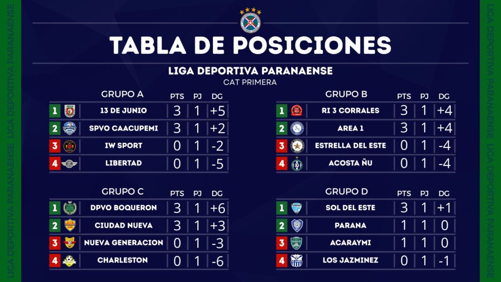 Tabla de posiciones jugada la primera fecha del campeonato 2026 de la Liga Paranaense de Futbol.